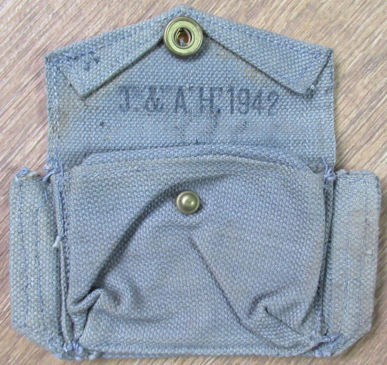 ammo pouch for pistol webbing, dated 1942. Good original condition.
