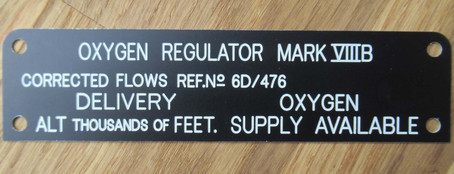 engraved faces and legend for the MK VIII oxygen regulator